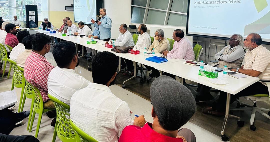 Bangalore: A sub-contractors meet was organized by Bearys Group at Bearys Global Research Triangle(BGRT) on 4th August 2024. All Subcontractors along with their Supervisors & Foremen) from Bangalore, Mangalore, Chennai and Hyderabad projects and the management led by Mr. Syed Mohamed Beary, Founder & CMD of Bearys group together with project directors GMs and senior staff from the head office attended the meet.
